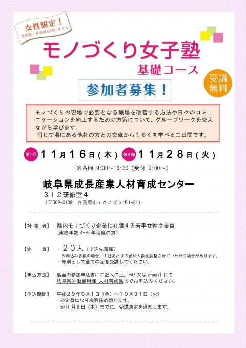 11/16,28 モノづくり女子塾